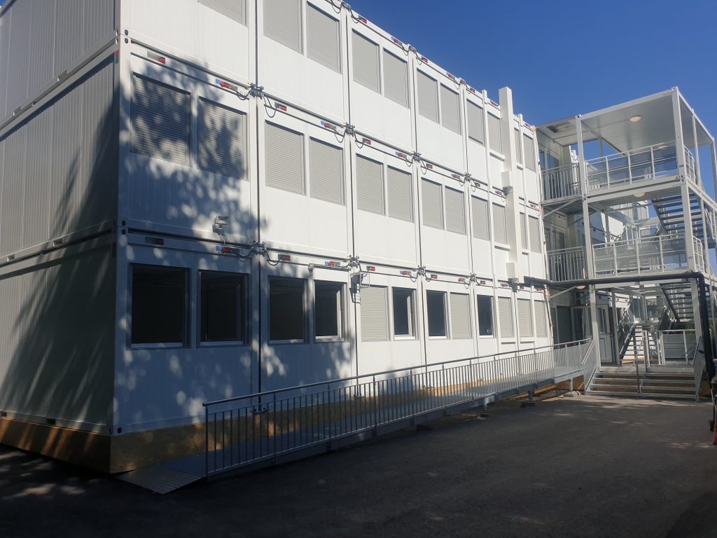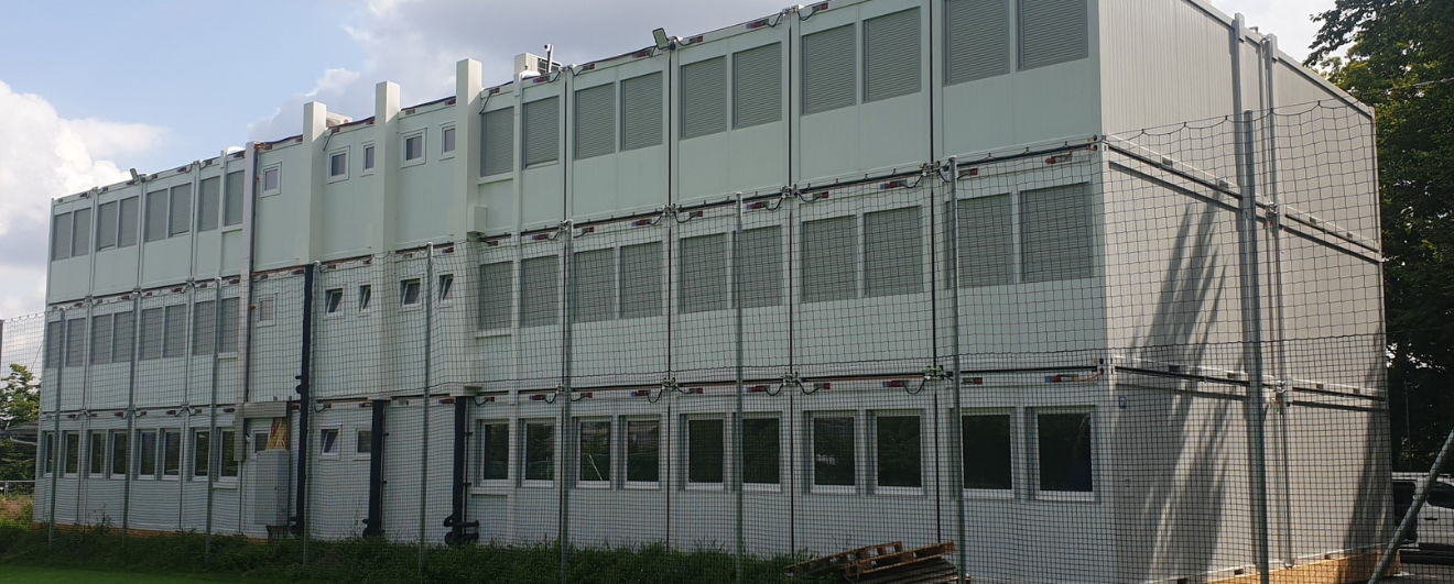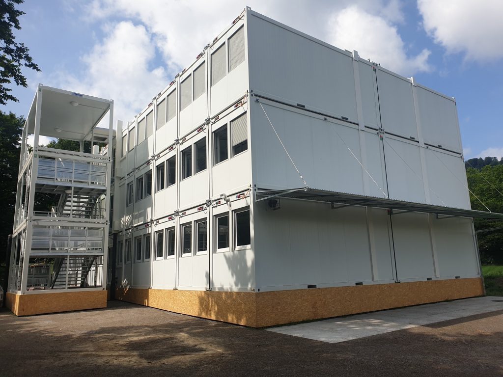 Für das Amt für Hochbauten der Stadt Zürich realisierten wir ein dreigeschossiges Schulraumprovisorium für die Oberstufe am Standort Borrweg. Die Anlage umfasst 72 Schulraummodule und 6 Sanitärmodule mit einer Anlagefläche von 29’385 x 12’125 x 8’408 mm (LxBxH).
