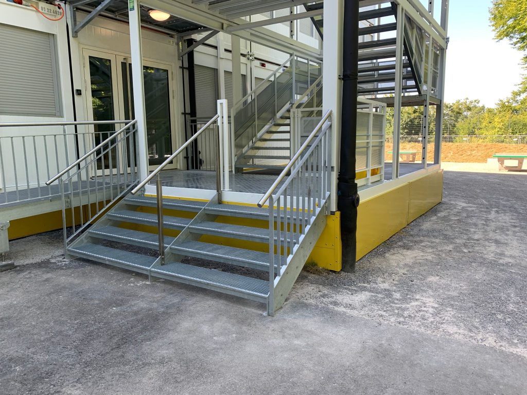 Treppen | Container-Treppenturm verzinkt inkl. Überdachung, Brandschutznorm |