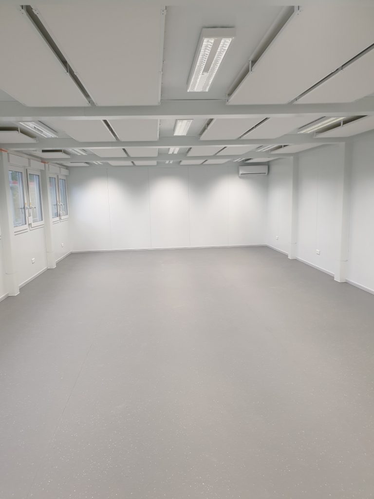 Ausgestattet mit Luft-Luft-Wärmepumpen für Heizung und Kühlung sowie modernen LED-Rasterleuchten bietet das Provisorium optimale Lernbedingungen. Ein verzinkter Treppenturm mit Überdachung und eine barrierefreie Rampe sorgen für sicheren Zugang.