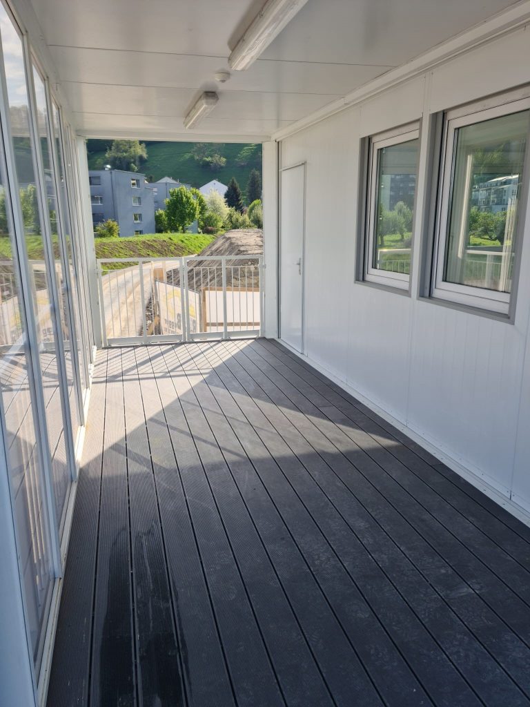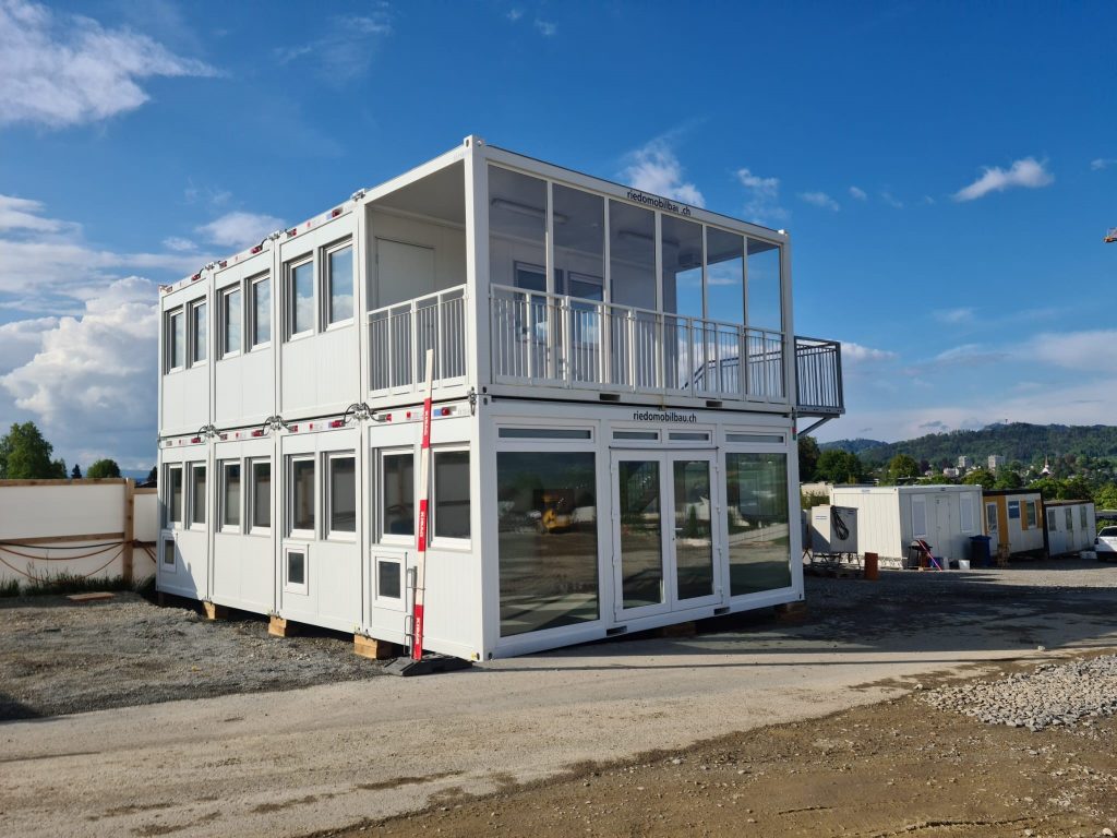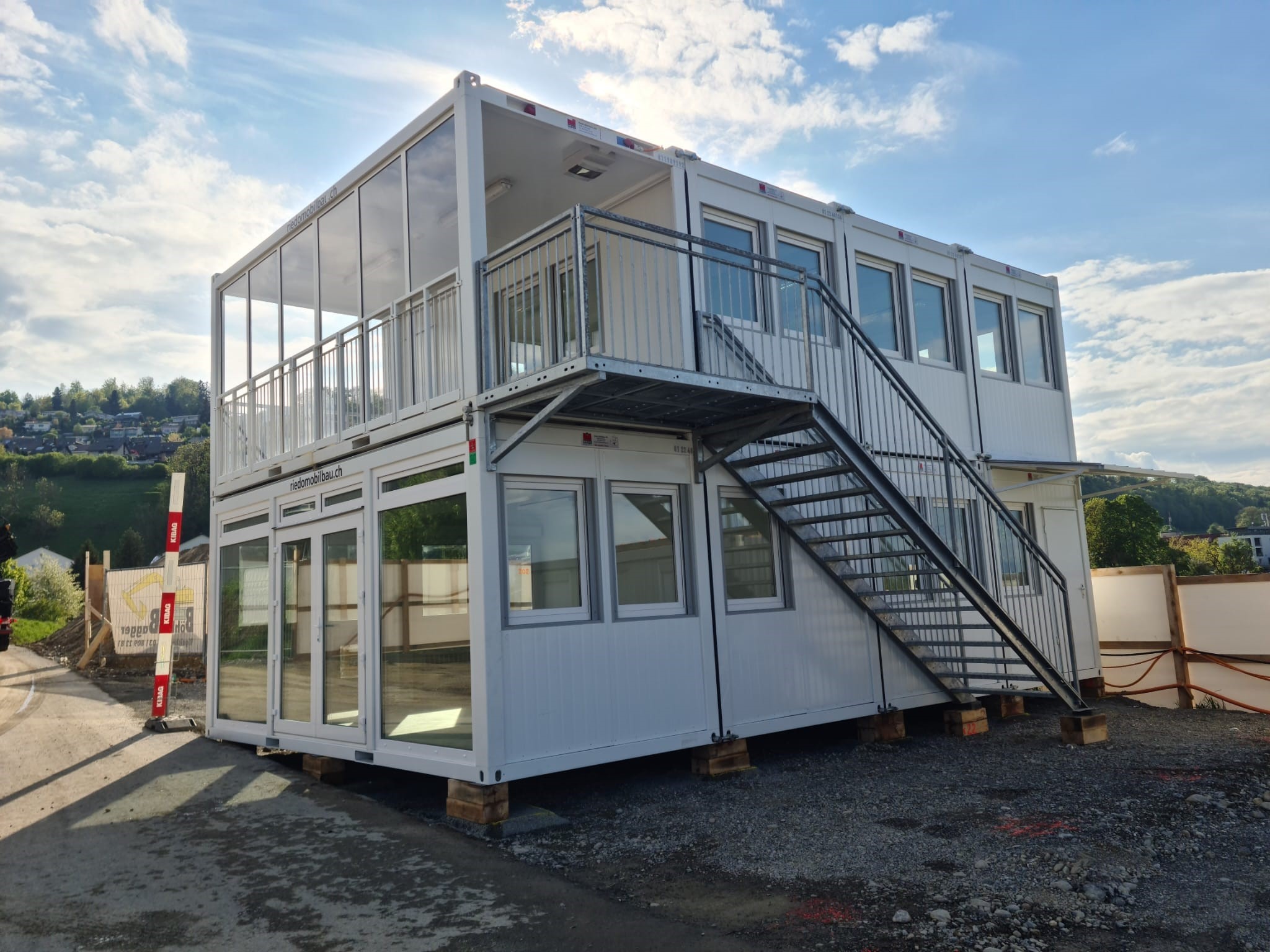 Für die Eiffage Suisse AG realisierten wir in Kehrsatz ein modernes zweistöckiges Baustellen- und Verkaufsbüro in Modulbauweise. Die Anlage besteht aus 7 Büromodulen, 1 Terrassenmodul und 1 Sanitärmodul auf einer Gesamtfläche von 6,05 x 29,4 Metern.