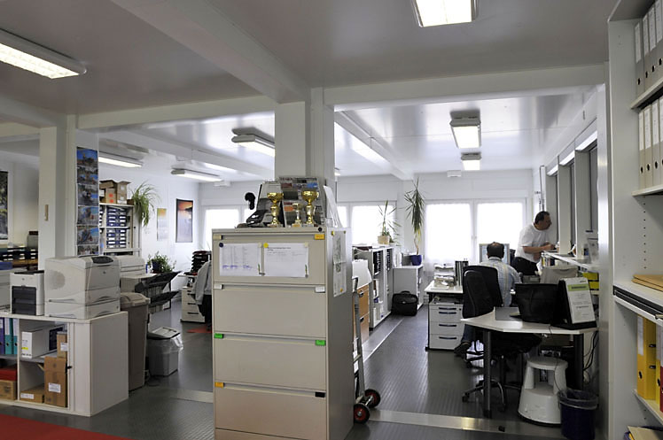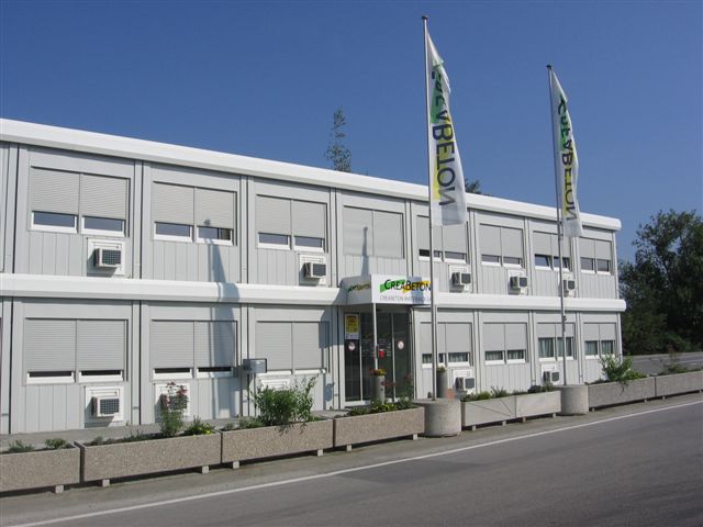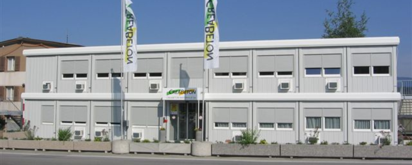 Für Creabeton in Lyss realisierte die Riedo Mobilbau AG eine provisorische Büroanlage in moderner Modulbauweise. Die zweistöckige Anlage mit einer Fläche von 21.9 x 12 m besteht aus 33 Büromodulen und zwei Sanitärmodulen und bietet grosszügige Arbeitsräume mit hoher Funktionalität.