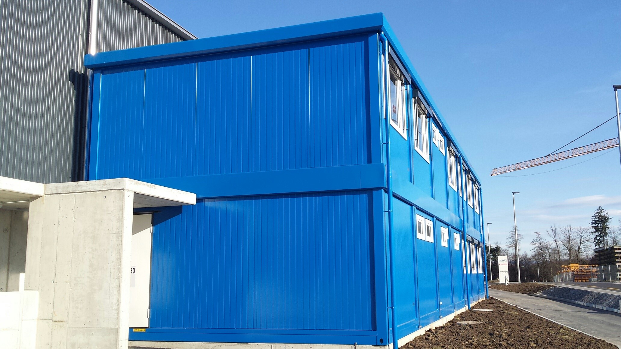 Für die Bauherrengemeinschaft BUECH realisierte die Riedo Mobilbau AG ein zweigeschossiges Bürogebäude in moderner Systembauweise. Die Anlage mit einer Fläche von 21.06 x 6.05 m besteht aus 14 Modulen und wurde innerhalb weniger Monate geplant, produziert und montiert.