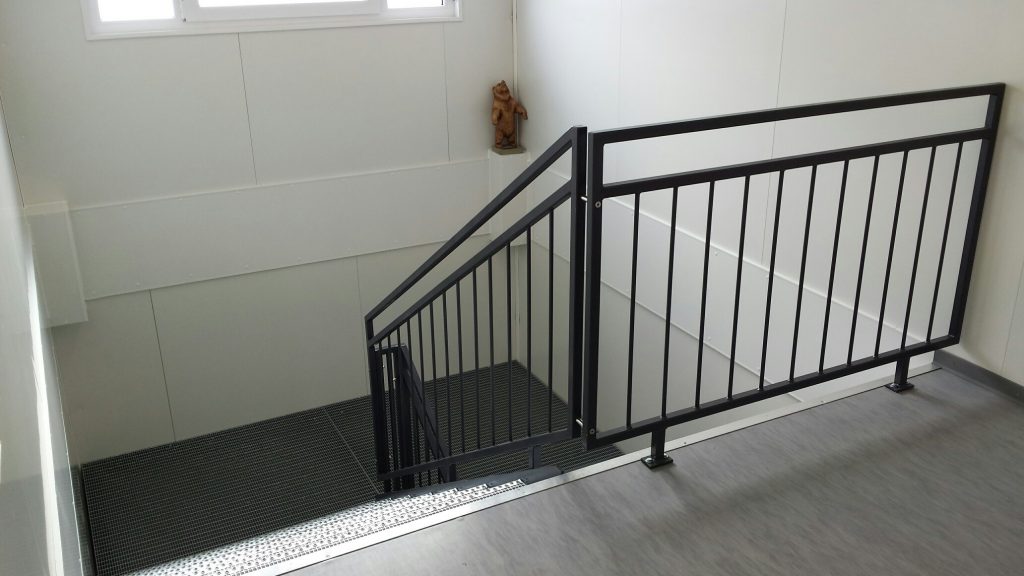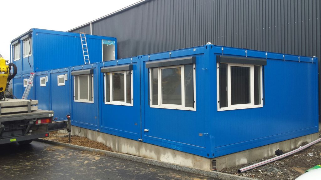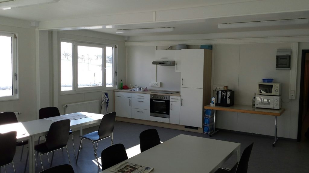 Das Gebäude bietet helle Büroräume mit Fermacell-Beplankung, tapezierten Wänden und Decken aus Glasfaser. Eine integrierte Split-Klimaanlage, eine Einbauküche mit Mittagstisch sowie drei vollständig ausgestattete Sanitärmodule sorgen für hohen Komfort. Beheizt wird das Gebäude energieeffizient über Warmwasserradiatoren mit Luft/Wasser-Wärmepumpe. Der Projektabschluss erfolgte im Januar 2015 nach nur fünf Monaten Gesamtprojektzeit.