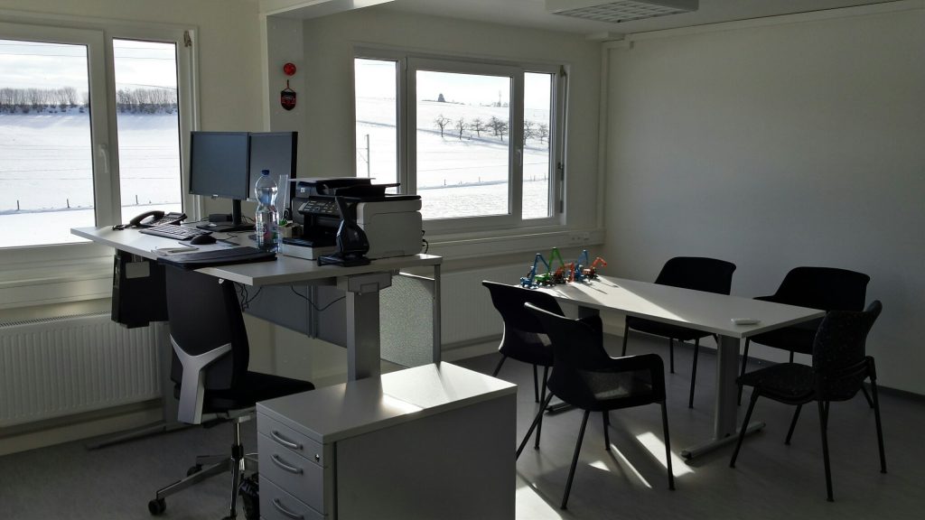 Bürogebäude BUECH von Riedo Mobilbau AG – modernes Systembau-Projekt mit Wärmepumpe, Klimaanlage und hoher Energieeffizienz.