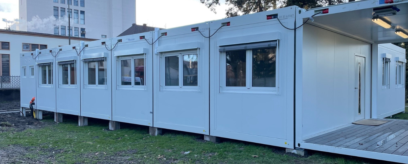 Ausgestattet mit PLUS-Line Containern, Oberlichtfenstern und elektrischen Raffstoren überzeugt das Gebäude durch Komfort und Energieeffizienz. Eine Luft-Luft-Wärmepumpe ermöglicht Heizen und Kühlen über dasselbe System. Das Projekt wurde im September 2021 abgeschlossen und ist für eine Nutzdauer von fünf bis zehn Jahren ausgelegt.