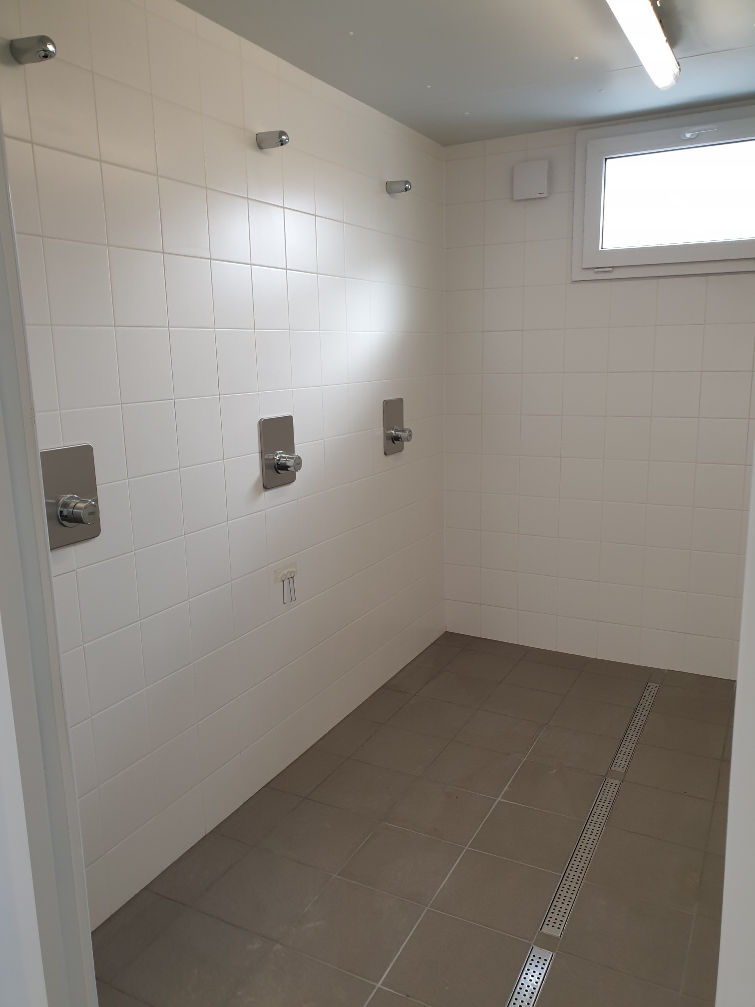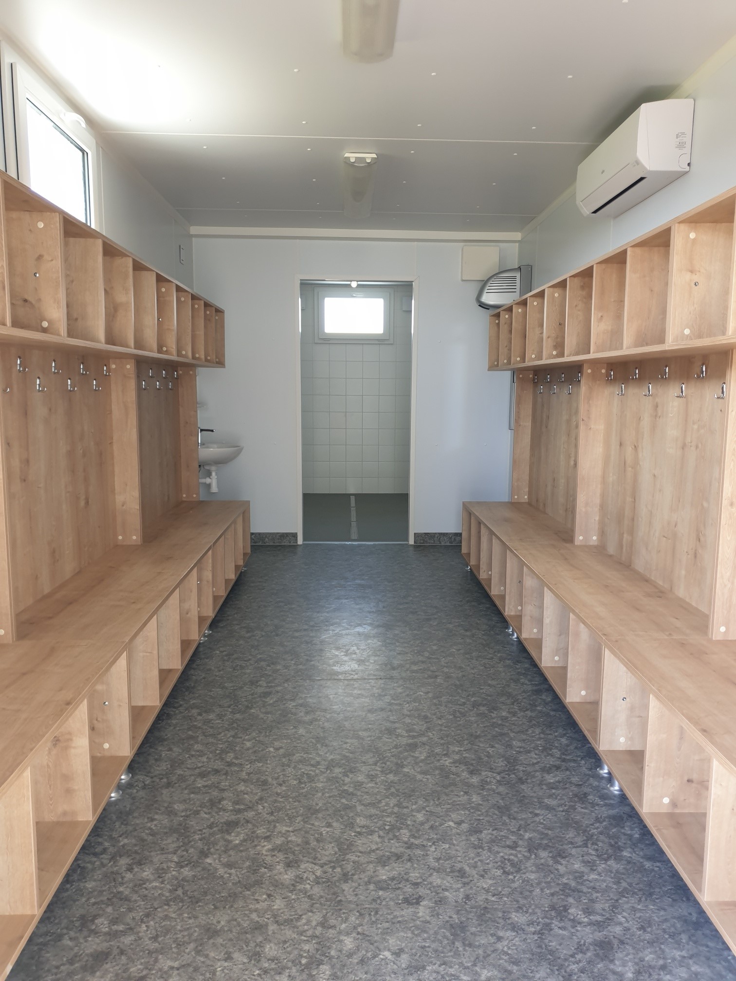 Garderoben FC Bassersdorf – moderne, energieeffiziente Sportanlage in Modulbauweise von Riedo Mobilbau AG, realisiert in nur sechs Wochen.