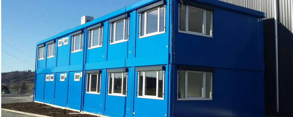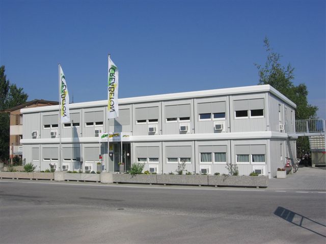 Büro-Modulanlage Creabeton Lyss. Für Creabeton in Lyss realisierte die Riedo Mobilbau AG...