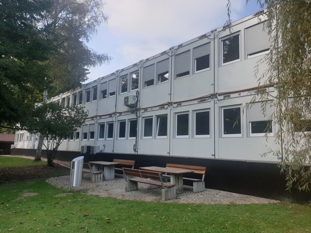 Schulprovisorium Collège in Fribourg. Für den Kanton Freiburg realisierte Riedo Mobilbau AG...