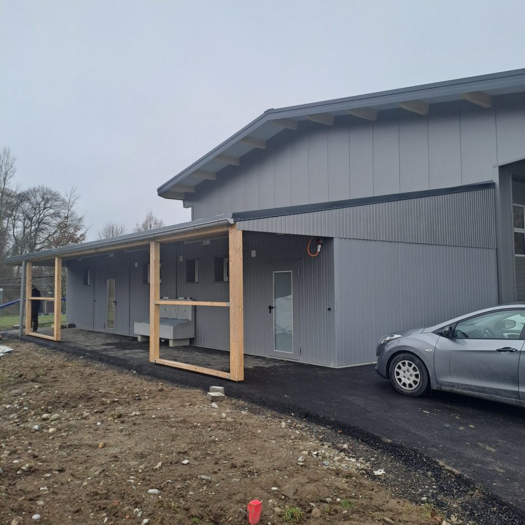 Schulprovisorium Arisdorf BL. Die Gemeinde Arisdorf setzte für den kurzfristigen Raumbedarf auf...